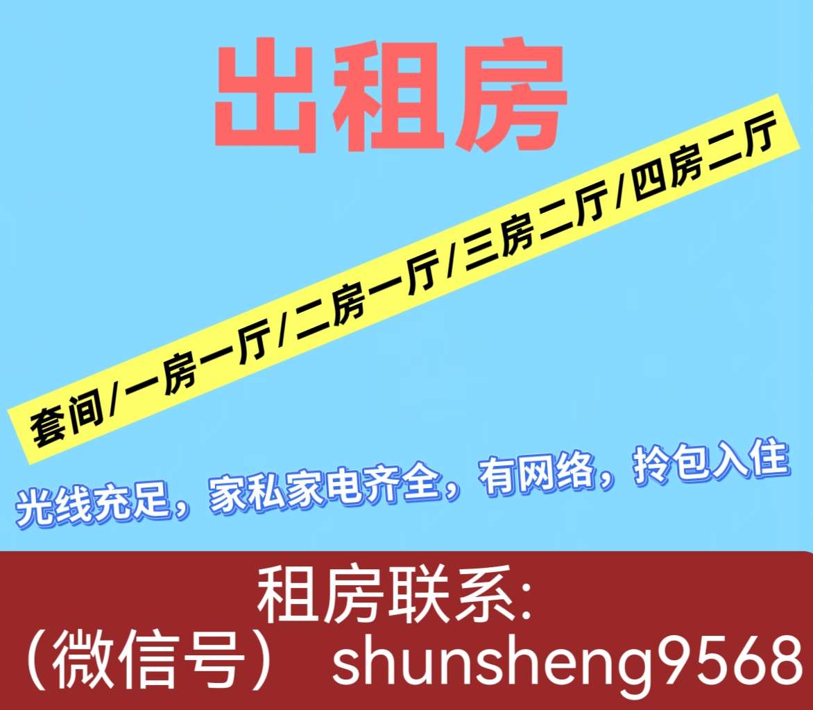 多套出租房:光线充足,家私家电齐全,拎包入住,有网络,租金实惠。看房联系微信号:shunsheng9568.